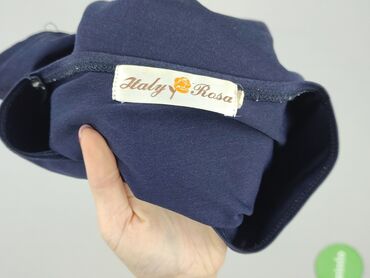 T-shirt damski „FLOWER SONG” - Fason: luźny, z krótkim rękawem i okrągłym dekoltem - Kolorystyka: dwukolorowa – granat + pudrowy róż (asymetryczne panele) - Przód: duży nadruk kwiatowy, napis „FLO...Stan: