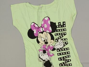 Żółta koszulka dziewczęca z nadrukiem Minnie Mouse - Kolor: pastelowy żółty - Fason: dopasowany T‑shirt z krótkim rękawem - Rękawy: falbaniaste, lekko bufiaste - Dekolt: okrągły - Nadruk: duża gra...