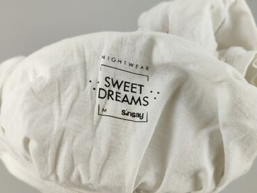 Koszula nocna Sinsay – rozmiar S - Linia: Sleepwear (metka wewnętrzna) - Kolor: biały w drobny, różowo‑zielony wzór kwiatków - Fason: koszulowy, zapinany na guziki z przodu - Rękaw: krótki - Kołni...