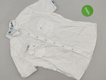 Koszula męska z krótkim rękawem w drobne paski, w odcieniach białego i niebieskiego. Posiada dwie kieszenie z patkami zapinane na guziki na piersiach oraz wyhaftowane detale na lewej stronie. Kołni...
