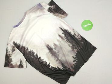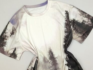 Biała koszulka z krótkim rękawem i okrągłym dekoltem. Z przodu duży, diagonlany nadruk w kolorze czarnym z motywem przypominającym łańcuch DNA/geometryczne paski. Tył gładki, bez nadruku. - Rozmia...