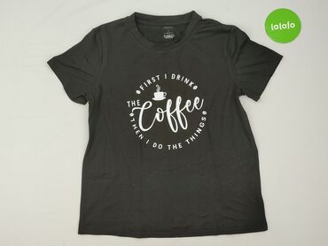 Czarna koszulka z krótkim rękawem z nadrukiem „HEART” na froncie. - Krój: klasyczny T‑shirt, okrągły dekolt - Rozmiar z metki: M - Materiał: 95% poliester, 5% elastan – elastyczna, gładka dzianina...