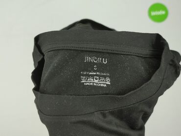 Czarna koszulka damska Mint, rozmiar S. - Klasyczny krój z krótkim rękawem i okrągłym dekoltem - Na przodzie duża aplikacja z nadrukiem jeansów i topu, wzbogacona błyszczącymi koralikami/dżetami -...