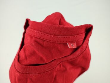Czerwona koszulka męska/damska z krótkim rękawem - Klasyczny krój z okrągłym dekoltem (crew neck) - Gładka, jednolita tkanina bez nadruków - Kolor: intensywna czerwień - Rozmiar: S (oznaczenie na ...
