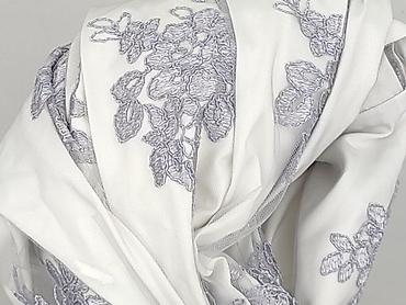 - Kolor: śmietankowa biel z jasnoszarymi, kwiatowymi aplikacjami/haftem