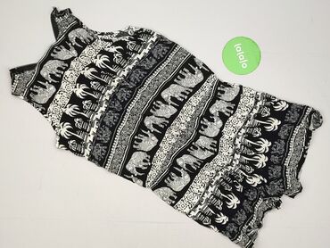 Kombinezon damski na ramiączkach S/M - Fason: krótki kombinezon (shorts), gumka w pasie podkreślająca talię - Kolor: czarny z drobnym, jasnym nadrukiem na górze; dół zdobiony bogatym, kwiatowym pr...