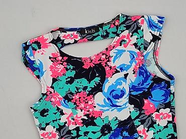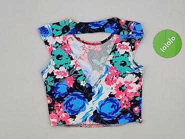 Damski top crop w kwiaty - Rozmiar: XS (na metce) - Fason: krótki crop top, szerokie ramiączka, okrągły dekolt z przodu i z tyłu - Wzór: drobne, wielobarwne kwiaty na ciemnym tle - Materiał: 95% p...