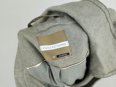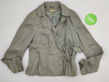 Marynarka damska w kolorze khaki/oliwkowym. - Krój prosty, lekko taliowany - Klapy z kołnierzem, zapięcie na 3 guziki w kolorze materiału - Dwie naszywane kieszenie z przodu - Długość do bioder, r...