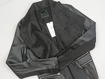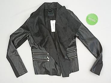 Damska kurtka/żakiet z ekoskóry, czarna - Materiał: skóra ekologiczna (etykieta: “SKÓRA EKOLOGICZNA”) - Fason: lekki żakiet/kardigan bez zapięcia, z przodem układającym się w kaskadę - Rękawy: dłu...