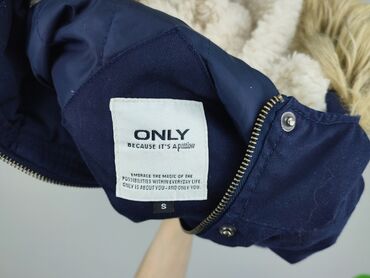 SyntetyczneKurtka damska ONLY, rozmiar S, granatowa, z kapturem wykończonym sztucznym futerzem.