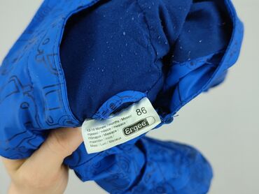 Kurtka dziecięca z kapturem – rozmiar 86 cm - Kolor: intensywny niebieski na zewnątrz - Podszycie: miękki, ciepły polar w paski (żółto‑zielone i niebieskie) - Zapięcie: suwak na całej długości - K...
