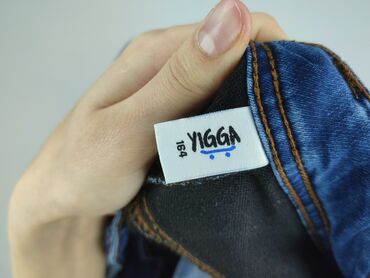 Dziewczęce jegginsy/jeansy Yigga, rozmiar 152. - Kolor: jasny niebieski denim z przetarciami i delikatnym efektem sprania - Krój: rurki, dopasowane nogawki - Pas: elastyczny (gumka), bez zapięcia ...