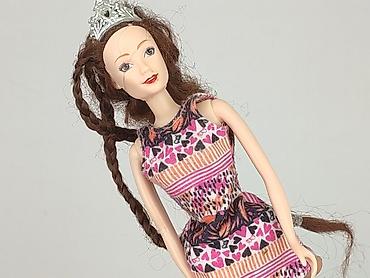 - Smukła lalka ok. 30 cm z długimi, brązowymi włosami zaplecionymi w warkocze – idealne do czesania i stylizacji