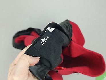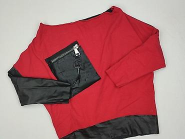 Bluza damska LA.MU, czerwono-czarna, z elementami imitującymi skórę.