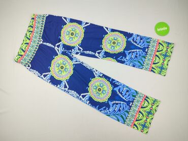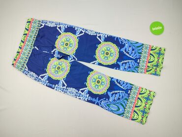 Damskie spodnie z miękkiej, lejącej tkaniny z orientalnym paisleyem - Kolorystyka: turkus, fiolet, róż, akcenty żółtego i czerni - Fason: lekkie, zwężane ku dołowi, z gumką w pasie - Rozmiar z metk...