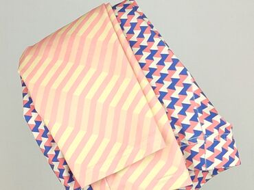 - Wzór: geometryczny zygzak w kolorach różu, granatu i ecru; kontrastowe, jasnoróżowe panele na dole nogawek z delikatnym, paskowym zygzakiem
