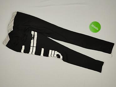 - Długie, elastyczne legginsy w kolorze czarnym z białymi wstawkami/grafiką po bokach nóg.