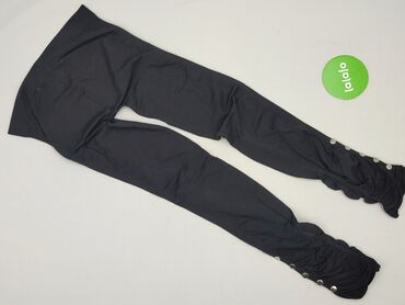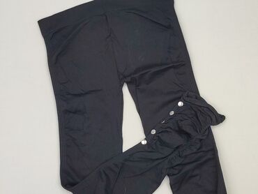Damskie spodnie typu joggers/legginsy - Kolor: czarny z kontrastowymi białymi lampasami po bokach nogawek - Fason: zwężane nogawki, średni stan, bez zapięcia (elastyczna talia) - Materiał: gładka, ...