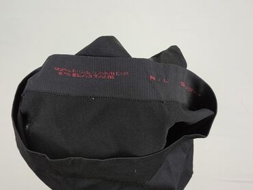 Czarne legginsy damskie - Krój: długie, dopasowane nogawki - Stan: wysoki, szeroki pas dla wygody i trzymania brzucha - Materiał: 85% bawełna, 10% poliester, 5% elastan (widoczna metka) - Rozmiar ...