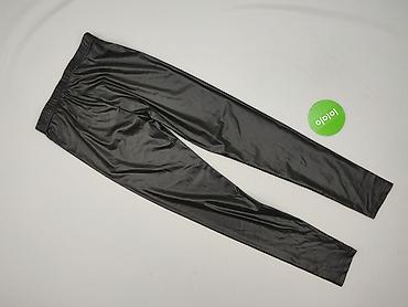 Legginsy damskie, czarne, o lekko połyskującym wykończeniu.