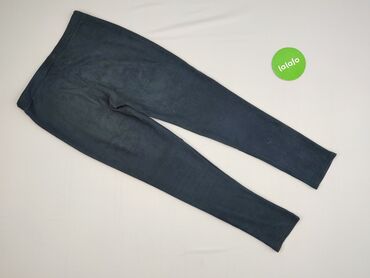 Damskie spodnie typu jegginsy w kolorze ciemnego granatu (denim). - Krój: dopasowany, zwężane nogawki - Pas: szeroka, elastyczna gumka – wygodne zakładanie bez zamka i guzików; od wewnątrz otwory ...