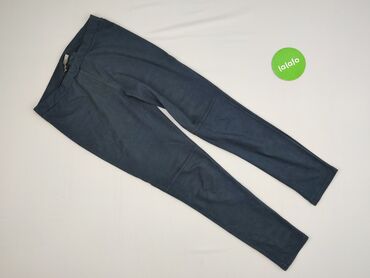 Damskie spodnie materiałowe, rozmiar M. - Kolor: ciemny granat z delikatną, fakturowaną strukturą materiału - Krój: zwężane nogawki, wysoki stan z szerokim, elastycznym pasem (bez zapięcia – komfo...