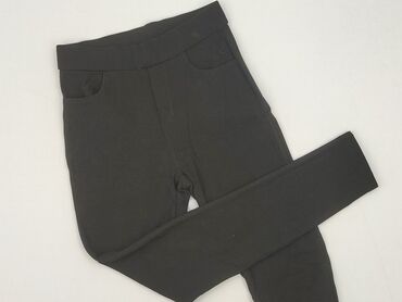 Czarne legginsy damskie z połyskiem - Krój: dopasowane, długie nogawki - Talia: elastyczna guma, wygodne dopasowanie - Materiał: 85% poliester, 15% elastan (metka) - Rozmiar z metki: S - Wykończen...