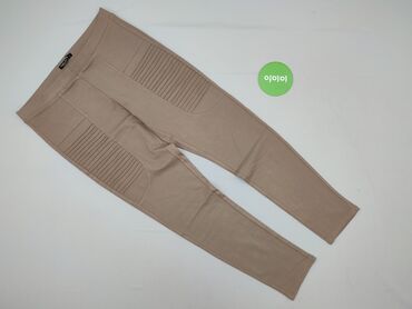 Beżowe spodnie damskie typu jegginsy/leggingsy z wysokim stanem - Krój: dopasowane nogawki, elastyczny pas bez zapięcia (wciągane) - Kieszenie: dwie przednie imitacje kieszeni, dwie naszywane kies...
