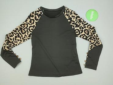 Bluzka damska z długim rękawem, rozmiar M - Wzór: panterka (czarno‑szary) - Dekolt: okrągły - Rękawy: lekkie bufki na ramionach - Materiał: 100% akryl (informacja z metki) - Pranie: zalecane w 30°C...
