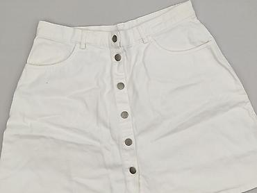 Biała dżinsowa spódnica mini Sinsay - Model: DENIM - Rozmiar z metki: 36 - Krój: klasyczna mini, talia na wysokości bioder/talii, surowo wykończony dół z postrzępioną krawędzią - Zapięcie: guzik m...