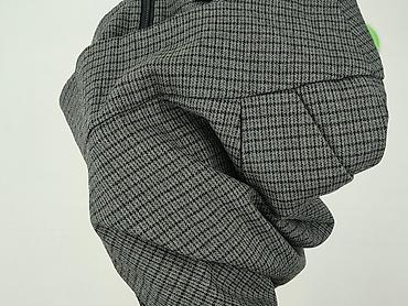- Krój: ołówkowy z zakładkami z przodu, wysoki pas podkreślający talię