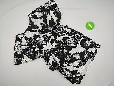 Top damski na ramiączkach, rozmiar L. - Krój: bez rękawów, dekolt w kształcie litery V z ozdobnym panelem - Wzór: bogaty, ornamentalno-kwiatowy print w odcieniach bieli i beżu na czarnym tle; deko...