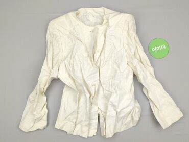 Bluzka damska z długim rękawem w kolorze ecru/kremowym. - Krój: lekko taliowany, z delikatnie wydłużonym tyłem. - Dekolt: w serek z krótką stójką. - Zapięcie: listwa z 4 guzikami z przodu. - Rękaw...