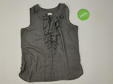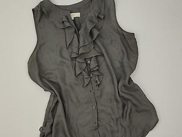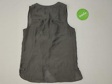 Top damski bez rękawów – luźny, zwiewny krój. - Kolor: jasnoszary/melanż. - Tkanina: lekka, cienka, przypominająca len lub mieszankę lnianą; miękka, oddychająca. - Fason: szeroki, oversize z mar...
