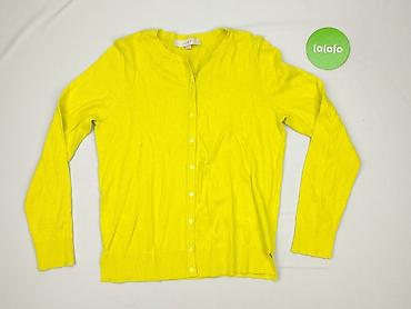 Żółty kardigan damski LOFT, rozmiar M - Fason: rozpinany na guziki, dekolt w serek - Rękawy: długie, szerokie ściągacze przy mankietach z ozdobnymi guzikami - Kieszenie: dwie naszywane z przodu - ...Rozmiar: