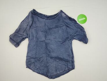 Bluzka damska z lekkiej, marszczonej tkaniny - Fason: luźny, z krótkim rękawem i lekko drapowanym przodem oraz dołem wykończonym delikatną gumką - Wzór: etniczny/geometryczny, w odcieniach niebiesk...