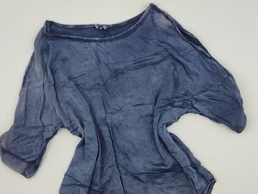 Luźna bluzka/kimono w kolorze kobaltowym - Krój oversize z szerokimi, 3/4 rękawami - Okrągły dekolt z delikatnym pęknięciem w kształcie litery V z przodu - Proste, nieopinające boki – swobodny, pr...