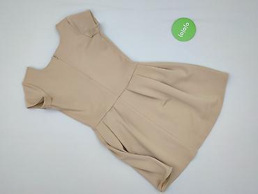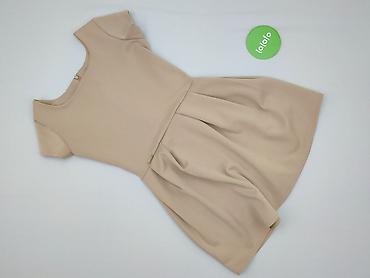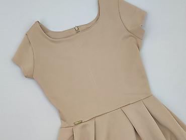 - Fason: rozkloszowany dół z kontrafałdami, talia podkreślona, krótki rękaw