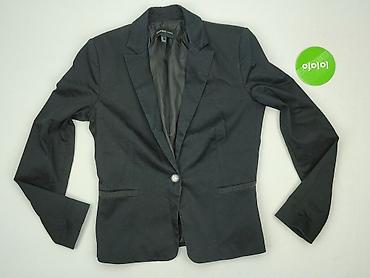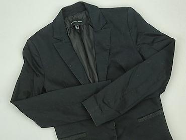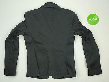 Czarny, uniwersalny żakiet idealny do biura i na formalne wyjścia; dopasowany krój podkreśla sylwetkę, elastyczna domieszka zapewnia komfort noszenia. Zdjęcia pokazują rzeczywisty wygląd modelu.