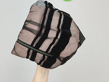 - Wzór i wykończenie: poziome pasy z kontrastem czerni i pudrowego beżu; transparentna siateczka/tiul z aksamitnymi wstawkami