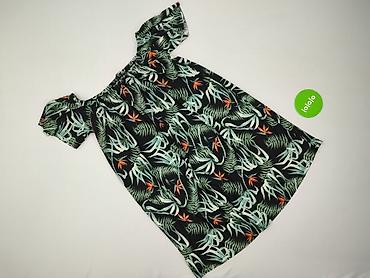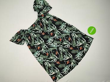 - Wzór: tropikalny print – zielone liście z akcentami pomarańczowych kwiatów na czarnym tle
