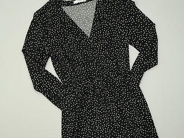 Sukienka damska H&M - Fason: prosta, lekko dopasowana, długość przed kolano - Rękawy: 3/4 z delikatnym marszczeniem przy mankietach - Dekolt: okrągły - Zapięcie: suwak z tyłu - Wzór: czarne tło w ...