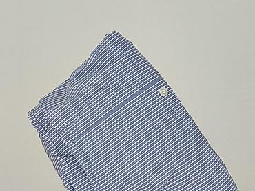 - Wzór: drobne białe paski na niebieskim tle (pasiak)