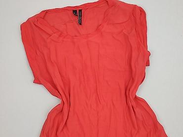Bluzka damska MANGO Casual - Kolor: koralowy/neonowy łososiowy - Krój: luźny, lekko wydłużony tył (asymetryczny dół), krótki rękaw - Dekolt: głęboki w kształcie V z listwą - Detale: dwie ozdobne k...