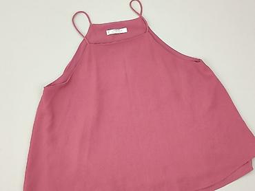 Bluzka/top damski MANGO Casual - Kolor: jasny róż (pastelowy) - Krój: bez rękawów, z falbankami przy ramionach; swobodny, lekko rozkloszowany dół - Dekolt: w kształcie litery V z przodu; zapięcie ...Stan:
