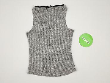 Top damski Mango Casual - Krój: bez rękawów, lekko crop (krótsza długość), luźny fason - Wzór: drobne poziome paseczki w odcieniach szarości na kremowym tle; na plecach karczek z paskami ułożonymi...