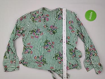 Lekka, przewiewna bluzka idealna do wiosenno‑letnich stylizacji; kopertowe wiązanie podkreśla talię i pozwala dopasować obwód. Kolorystyka: zielono‑biały pas z wielobarwnymi kwiatami. Marka: M&S (Marks & Spencer).