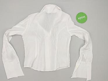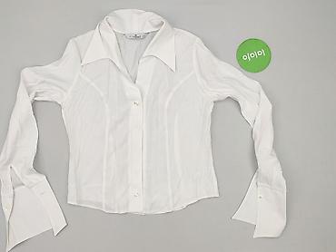 Biała koszula damska z długim rękawem, rozmiar M. - Fason: klasyczny kołnierzyk, zapięcie na guziki z przodu - Rękawy: długie, delikatnie bufiaste przy ramionach, mankiety na guziki - Materiał: 10...