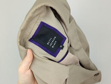 Damska marynarka czarna, klasyczny fason - Rozmiar z metki: 44 - Krój: taliowany, zapinana na jeden guzik - Kołnierz z klapami - Dwie przednie kieszenie z patkami - Delikatne przeszycia modelujące...