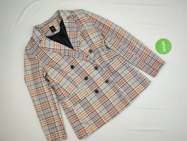 Żakiet damski Sinsay - Rozmiar: XS - Kolor: ecru/kremowy - Fason: dwurzędowy, z kołnierzem z klapami - Zapięcie: guziki w kolorze żółwim (3 na przodzie + po 1 przy mankietach) - Kieszenie: dwie na...